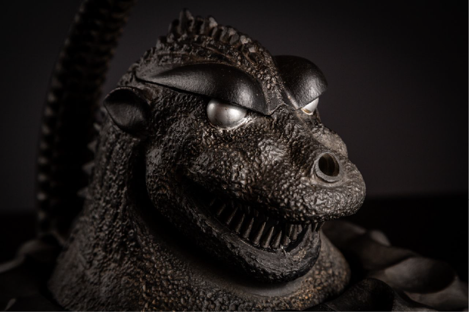 この製品は鉄瓶としては勿論、インテリアアクセサリーとしてもお楽しみいただけるもので、ゴジラの迫力と南部鉄瓶の重量感溢れる質感が魅力的な作品となっております。