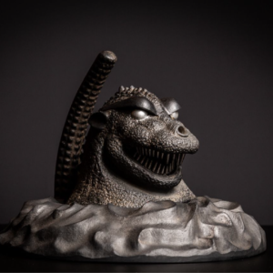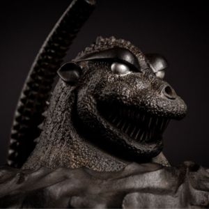 2020年のオリンピックイヤーに向けて、日本の伝統文化である岩手県の南部鉄器の新しいチャレンジとして、宝田明氏によるプロデュースのもと、従来の鉄器鋳造とは違ったロストWAX方式による新技術 駆使し、ロウ型製作、流し込み、仕上げを行い、一貫製作して完成させたのが、この「南部鉄瓶ゴジラ」です。
